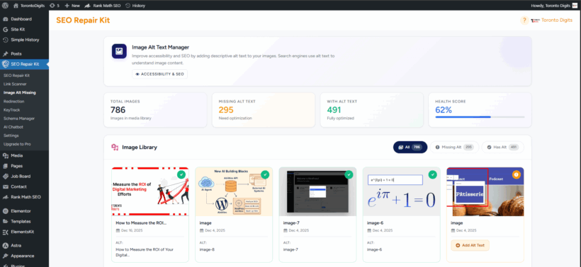 Manually adding alt text to large image libraries can take hours. With the upcoming AI Alt Text Generator, SEO Repair Kit will automatically generate context-aware, SEO-friendly alt text, improving accessibility and image optimization without manual effort.